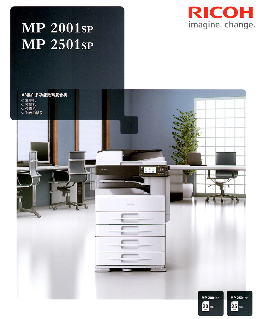 理光2001SP黑白一體機,20頁