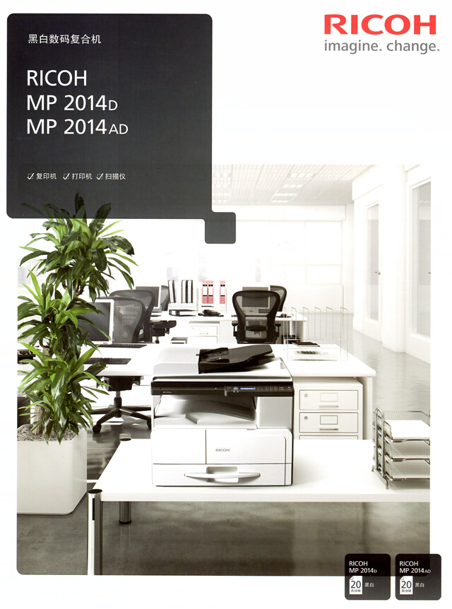 描述:理光炫致系列黑白數(shù)碼復(fù)合機,專為中國市場定制,機身緊湊、功能豐富、維護簡便,MP2014滿足普通辦公用戶的日常工作需求的同時,也提供了更多的擴展性應(yīng)用。集復(fù)印、打印和彩色掃描于一體,是具有高性價比特點的3合1黑白多功能數(shù)碼復(fù)合機。