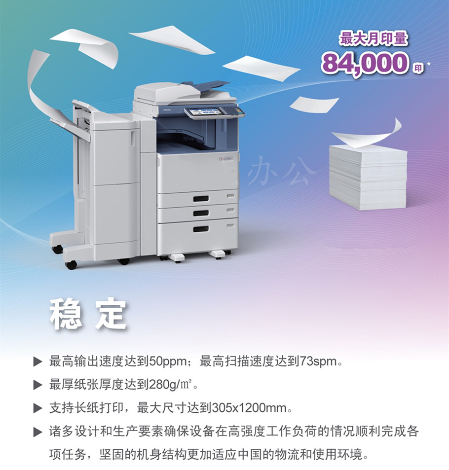 黑白:73spm(A4,300×300dpi); 彩色:73spm(A4,300×300dpi); |