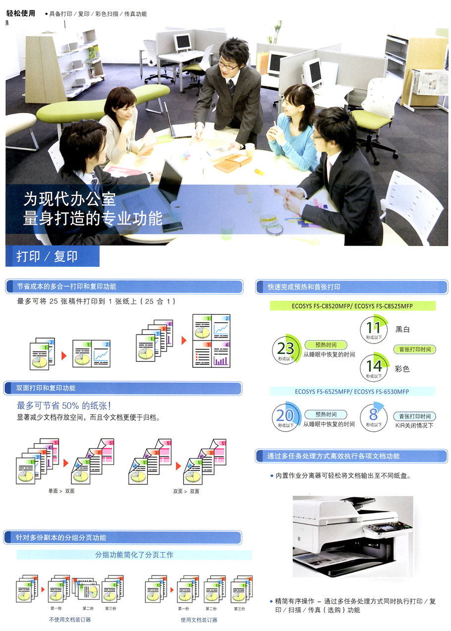 描述:4.3英寸彩色觸摸式面板,便捷的操作性、人性化設(shè)計(jì)的用戶使用界面/卡紙率低,卡紙排除便利/京瓷獨(dú)創(chuàng)的長(zhǎng)壽命、高品質(zhì)非晶硅感光鼓/維修服務(wù)便利/可選購(gòu)傳真組件/25頁(yè)/分鐘,打印速度快