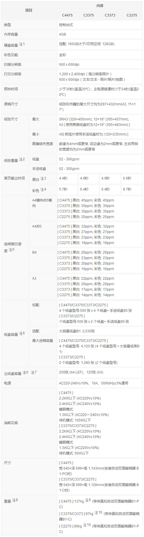 注1 DocuCentre-V C3375/C3373/C2275時(shí)。DocuCentre-V C4475為10.5秒。